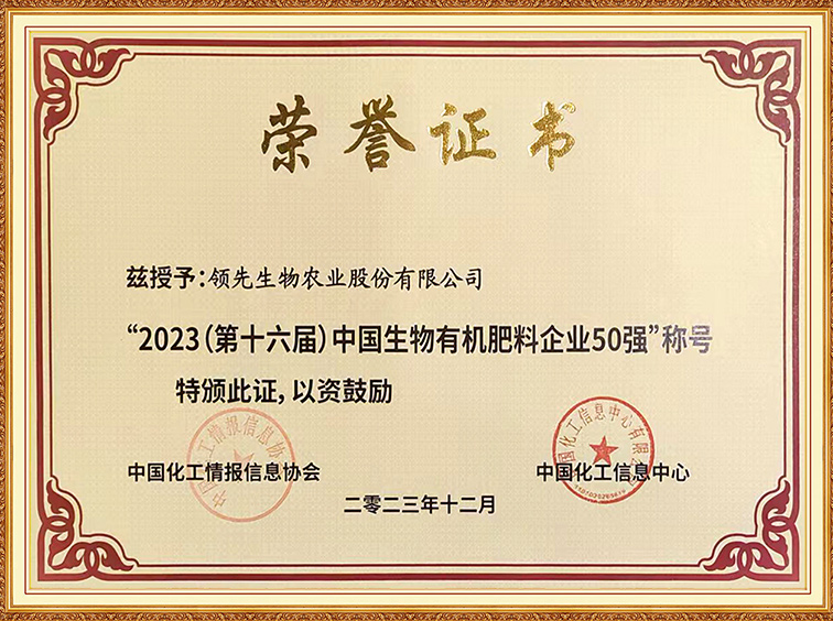 2023中國生物有機肥l料企業(yè)50強
