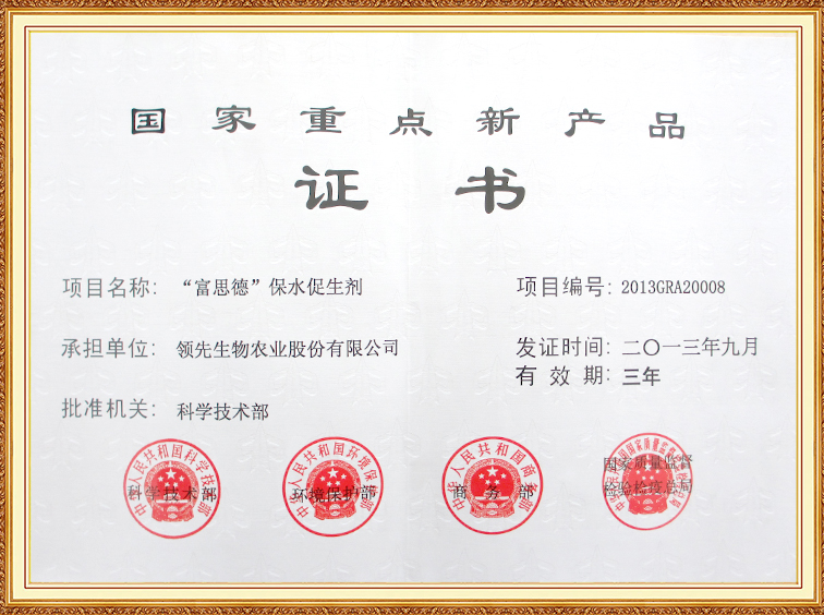 “富思德”保水促升劑—國(guó)家重點(diǎn)新產(chǎn)品