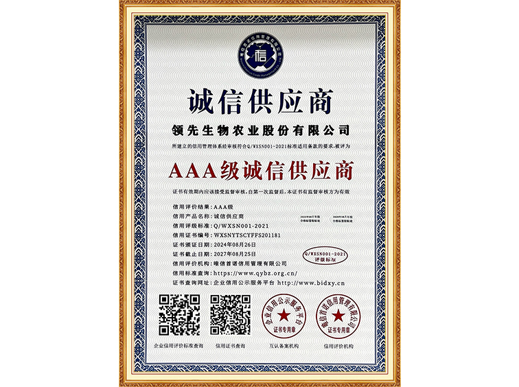 AAA級(jí)誠信經(jīng)營(yíng)示范單位
